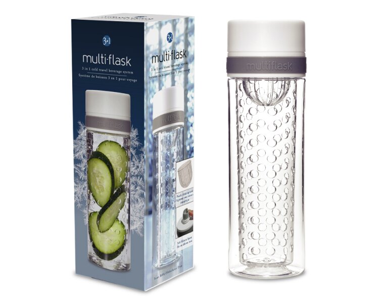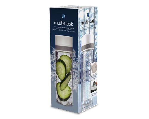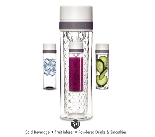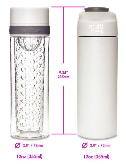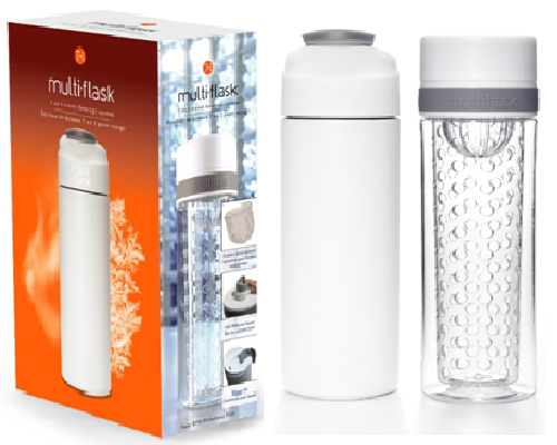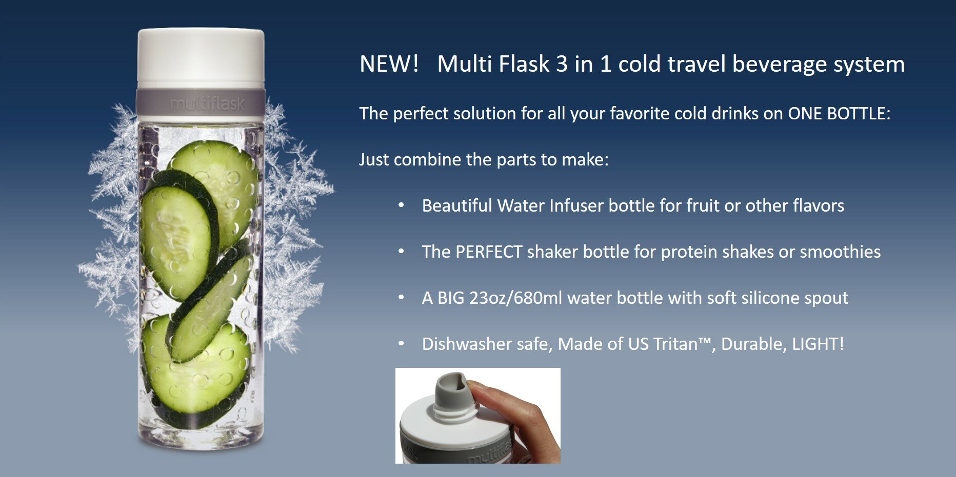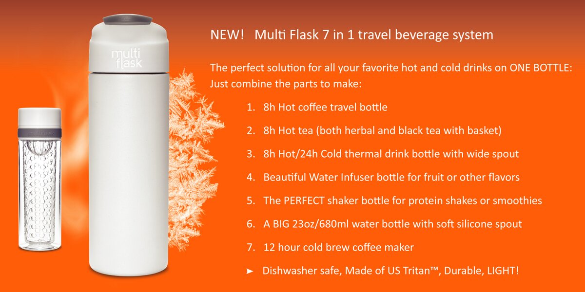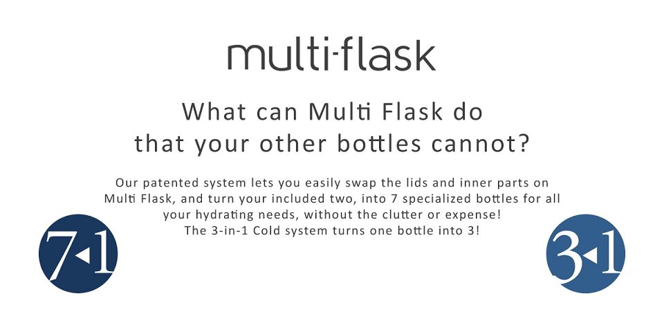The Multi Flask is a multipurpose 6-in-1 bottle used for all your hydration needs. This system is really amazing. You can drink hot or cold drinks, infused beverages, insulated (hot or cold), fruit infused beverages and powered beverages.